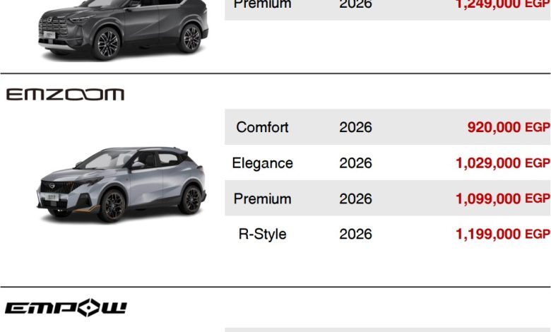 وفي هذا السياق، أعلنت جميل موتورز عن تقديم تخفيضات جديدة على طرازGS3 Emzoom، والذي يتوافر في السوق المصري لموديلات عام ٢٠٢٦ بأربع فئات تجهيزية هي ComfortوElegance و PremiumوR-Style، حيث تبدأ أسعار الفئات بعد التحديث من ٩٢٠.٠٠٠ جنيه مصري لفئة Comfort ، و١.٠٢٩.٠٠٠ جنيه مصري لفئة Elegance، و١.٠٩٩.٠٠٠ جنيه مصري لفئة Premium، و١.١٩٩.٠٠٠ جنيه مصري لفئة R-Style، كما شملت التحديثات السعرية طراز GS4 MAX لموديل عام ٢٠٢٦، والذي يتوافر بفئة تجهيزية واحدة، بسعر ١.٢٤٩.٠٠٠ جنيه مصري.